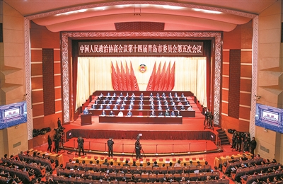 1月19日上午,中國(guó)人民政治協(xié)商會(huì)議第十四屆青島市委員會(huì)第五次會(huì)議在市人民會(huì)堂隆重開(kāi)幕。??劉 棟??攝