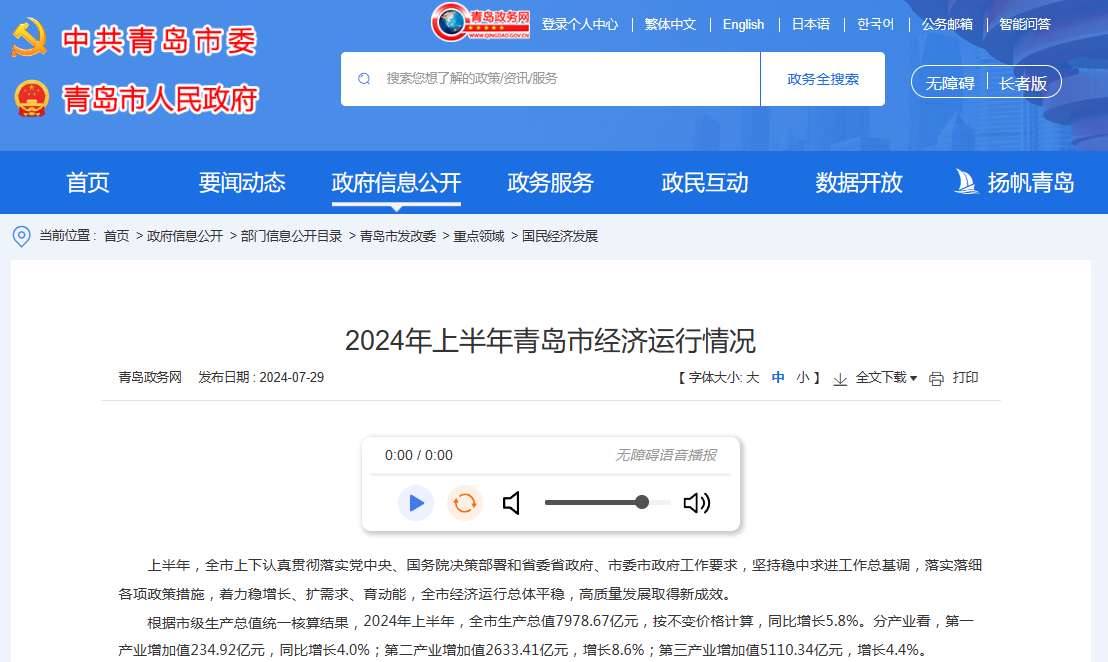 今年以來,全市上下堅持以習(xí)近平新時代中國特色社會主義思想為指導(dǎo),認(rèn)真貫徹落實習(xí)近平總書記視察山東重要講話精神和中央、省市經(jīng)濟(jì)工作會議部署,堅持穩(wěn)中求進(jìn)、以進(jìn)促穩(wěn)、先立后破,以扎實舉措擴(kuò)需求、穩(wěn)增長、提質(zhì)效,全市經(jīng)濟(jì)穩(wěn)健向好、進(jìn)中提質(zhì)。上半年,全市實現(xiàn)地區(qū)生產(chǎn)總值7978.67億元,同比增長5.8%,增速高于全國0.8個百分點(diǎn),列副省級城市第三位,為實現(xiàn)全年目標(biāo)打下堅實基礎(chǔ),努力在現(xiàn)代化強(qiáng)省建設(shè)中打頭陣、當(dāng)先鋒,奮力推進(jìn)中國式現(xiàn)代化青島實踐。