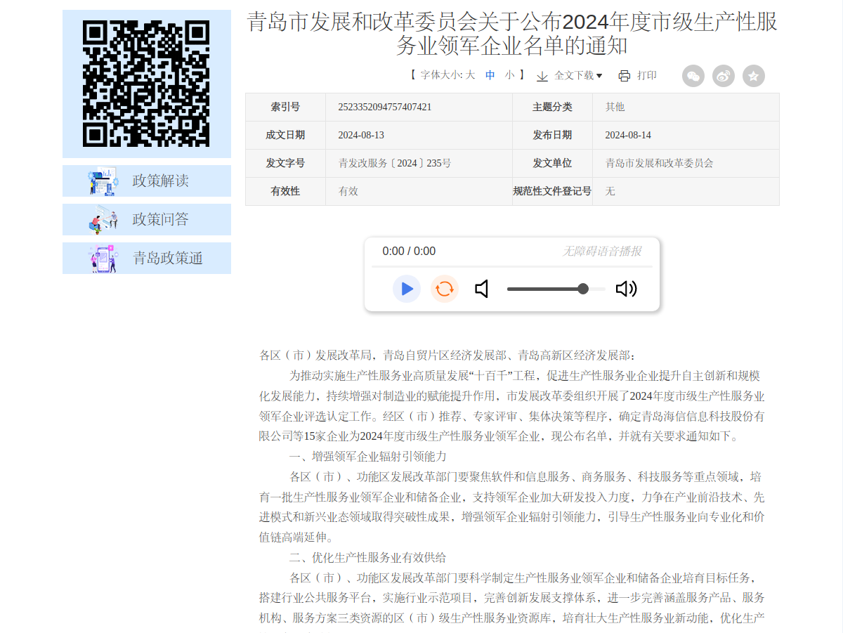 深入謀劃推動(dòng)服務(wù)業(yè)特別是生產(chǎn)性服務(wù)業(yè)發(fā)展。一是落實(shí)生產(chǎn)性服務(wù)業(yè)高質(zhì)量發(fā)展“十百千”工程?!耙粯I(yè)一策”出臺軟件和信息服務(wù)、科技服務(wù)、商務(wù)服務(wù)等9大生產(chǎn)性服務(wù)業(yè)實(shí)施方案,新增5000萬元扶持資金支持服務(wù)業(yè)發(fā)展。二是開展生產(chǎn)性服務(wù)業(yè)發(fā)展能力提升行動(dòng)。建立完善市級生產(chǎn)性服務(wù)業(yè)資源庫,新增65項(xiàng)入庫資源,其中服務(wù)產(chǎn)品33項(xiàng)、服務(wù)機(jī)構(gòu)22項(xiàng)、服務(wù)方案10項(xiàng),累計(jì)達(dá)到223項(xiàng)。三是推動(dòng)先進(jìn)制造業(yè)和現(xiàn)代服務(wù)業(yè)融合發(fā)展。認(rèn)定中國檢驗(yàn)認(rèn)證集團(tuán)山東公司等11家企業(yè)為第四批市級兩業(yè)融合試點(diǎn)單位,爭取有屋智能、興程人力2家企業(yè)入選第五批兩業(yè)融合試點(diǎn)。四是培育生產(chǎn)性服務(wù)業(yè)領(lǐng)軍企業(yè)。認(rèn)定海信信息科技等15家企業(yè)為2024年度市級生產(chǎn)性服務(wù)業(yè)領(lǐng)軍企業(yè),爭取以薩技術(shù)、銘派科技、松立控股、恒晟源4家企業(yè)入選2024年度省級生產(chǎn)性服務(wù)業(yè)領(lǐng)軍企業(yè)。上半年,全市生產(chǎn)性服務(wù)業(yè)實(shí)現(xiàn)增加值3060.2億元,同比增長6.0%,占服務(wù)業(yè)比重為59.9%,比上年同期提高0.7個(gè)百分點(diǎn)。預(yù)計(jì)全年全市生產(chǎn)性服務(wù)業(yè)增加值達(dá)到6400億元。