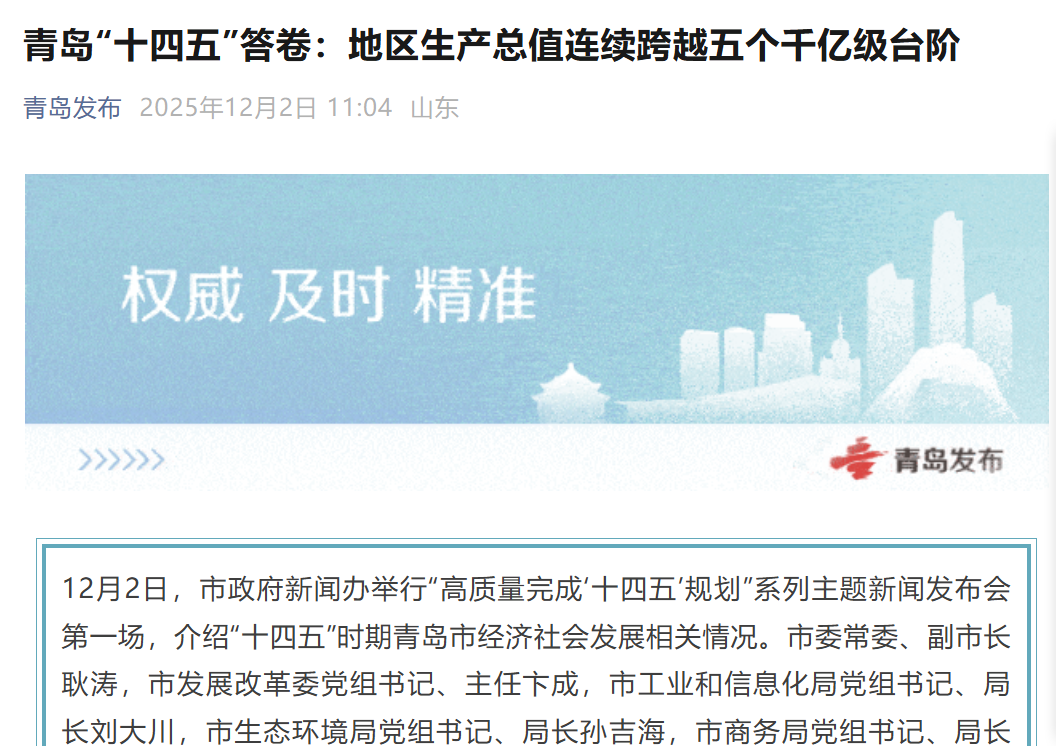 “十四五”以來,全市上下堅(jiān)持以習(xí)近平新時(shí)代中國(guó)特色社會(huì)主義思想為指導(dǎo),深入貫徹黨中央、國(guó)務(wù)院決策部署和省委、省政府工作要求,錨定“走在前、挑大梁”,統(tǒng)籌做好穩(wěn)增長(zhǎng)、提質(zhì)效、促改革、惠民生、防風(fēng)險(xiǎn)工作,積極探索中國(guó)式現(xiàn)代化青島實(shí)踐,開創(chuàng)青島各項(xiàng)事業(yè)蓬勃發(fā)展新局面。