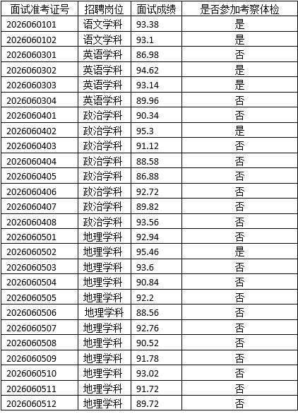 根據《青島市教育局直屬學校選聘2026屆優(yōu)秀師范類業(yè)生簡章》規(guī)定,現將11月20日招聘崗位面試成績公布如下: