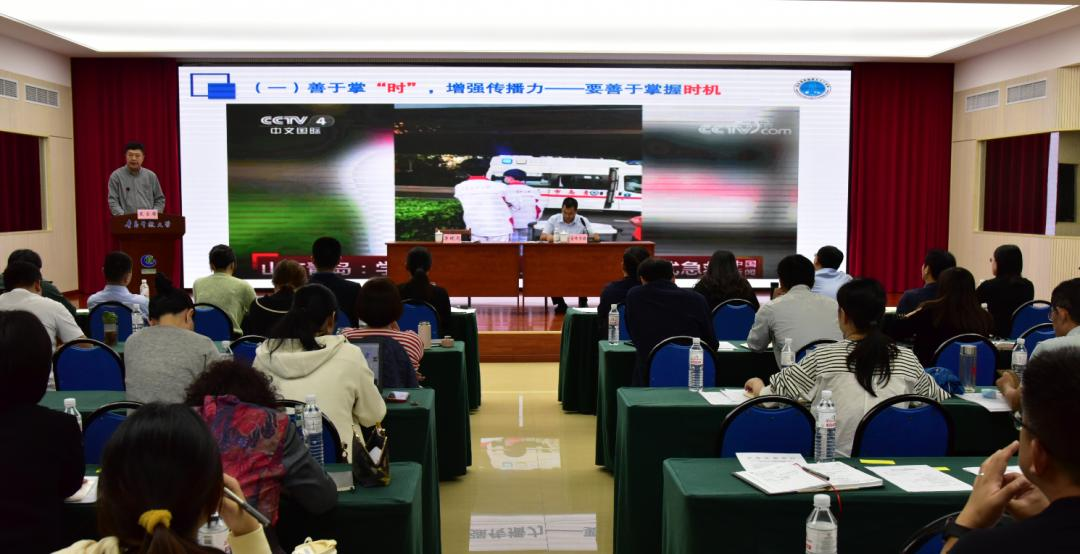學校袁忠珂副校長以《把握宣傳“時度效”,講好教育新故事》為題,從善于掌“時”,增強傳播力;注意控“度”,提升感染力;努力求“效”,擴大影響力三個方面,就學校新媒體宣傳工作的創(chuàng)新做法及經(jīng)驗反思作了專題匯報。