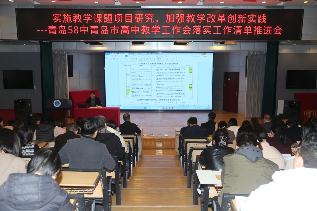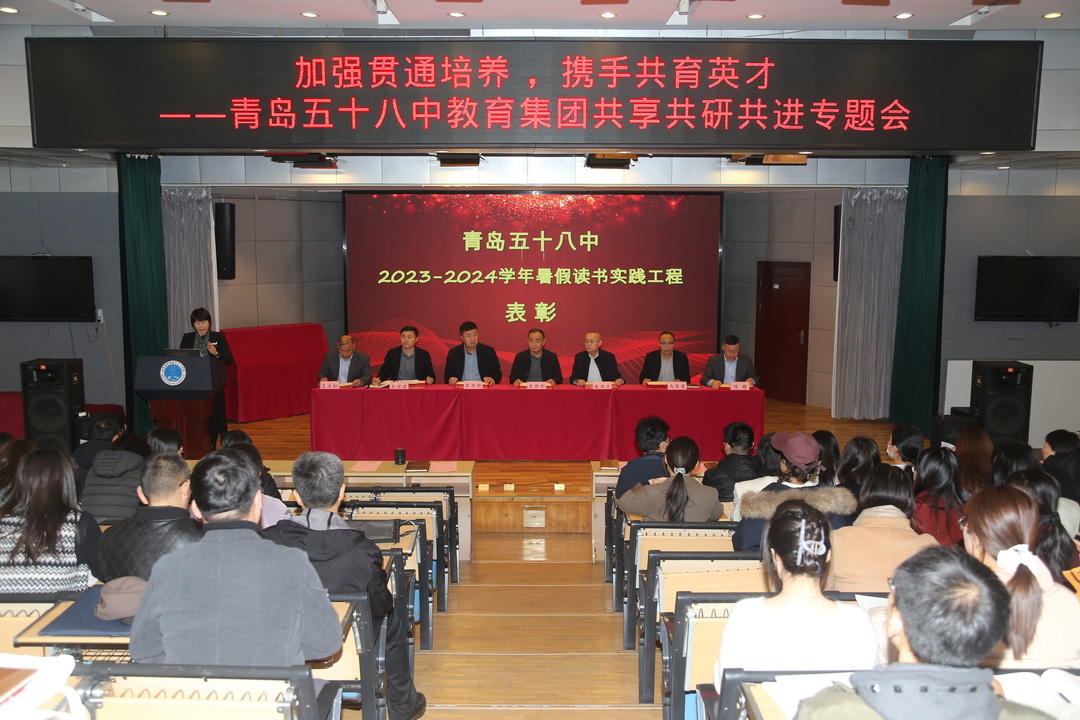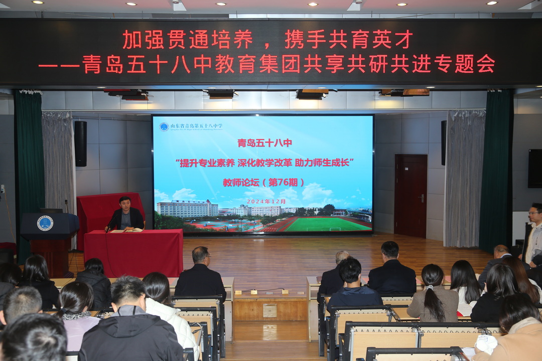 12月5日下午,青島五十八中2024年讀書實踐工程、青年教師基本功比賽、市一師一優(yōu)課、市原創(chuàng)命題大賽頒獎典禮暨第76期“提升專業(yè)素養(yǎng) 深化教學改革 助力師生成長”教師論壇,在校本部報告廳舉行。會議由王付波副校長主持,學校全體教職工參會,高新校區(qū)、杜威實驗學校、附屬初中(棗山中學)三個集團校同步網(wǎng)絡參會。