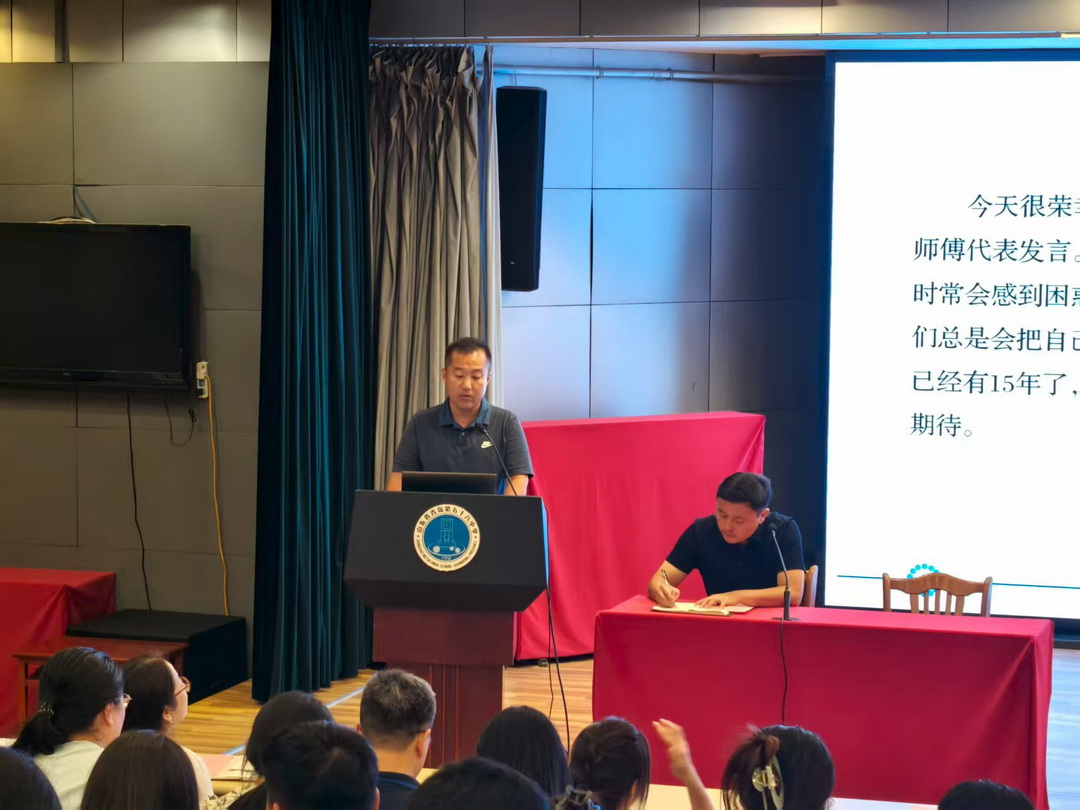 骨干教師代表荊曉莉分享了從教多年的心得體會。她強調(diào),教育是薪火相傳的事業(yè),青年教師的成長關(guān)乎學(xué)校未來,師徒結(jié)對是我校優(yōu)良的傳統(tǒng)。她向青年教師提出兩點希望:一要樹立理想、做好規(guī)劃,力爭“一年站穩(wěn)講臺,三年做出成績,十年成為名師”;二要真誠愛生、以愛化人,用愛心影響學(xué)生成長。她還給出三點建議:深入把握學(xué)情,實現(xiàn)課堂從知識傳遞到生命喚醒的轉(zhuǎn)變;錘煉教學(xué)語言,提升課堂感染力;積極反思寫作,參與科研,將實踐轉(zhuǎn)化為成果。