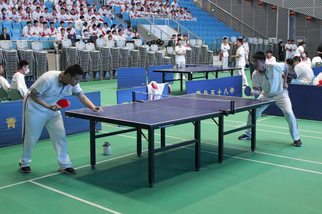 乒乓球運動是我校傳統(tǒng)體育項目,深受廣大師生的喜愛。本次比賽中,參賽隊員身手敏捷、斗志昂揚,各類絕妙發(fā)球、推擋、弧圈球等精彩瞬間不斷呈現(xiàn),賽出了風格、賽出了水平。小小銀球在臺上來回飛舞,臺下觀眾屏氣凝神、目不轉(zhuǎn)睛,不時發(fā)出陣陣喝彩,送上熱烈掌聲。