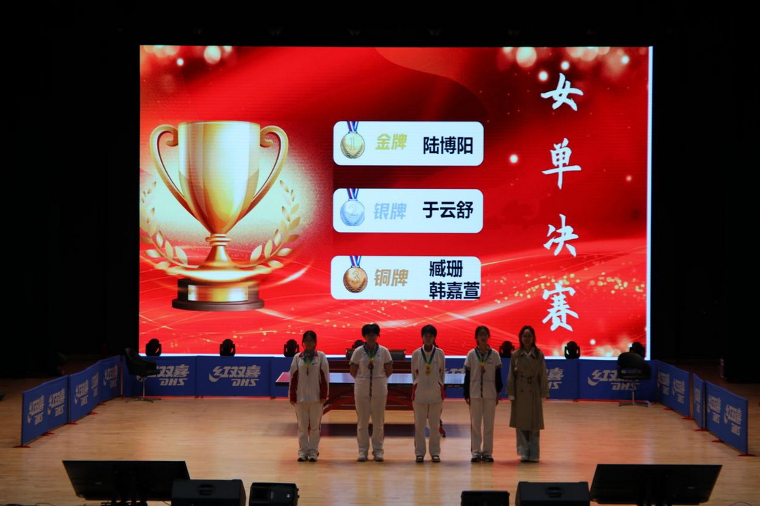 體育競技比賽,不光考察選手們的技戰(zhàn)術(shù),更重視選手們心理素質(zhì)和臨場發(fā)揮能力。在賽場上,選手們面對交替領先的比分,及時調(diào)整戰(zhàn)術(shù),展現(xiàn)了最好的競技水平,拼出了青春昂揚的朝氣和勇不服輸?shù)亩分?。最后校本部高?3班劉家旭、高一2班李東芮,高新校區(qū)高一1班宋坤、高一4班陸博陽分別斬獲男單和女單冠軍。