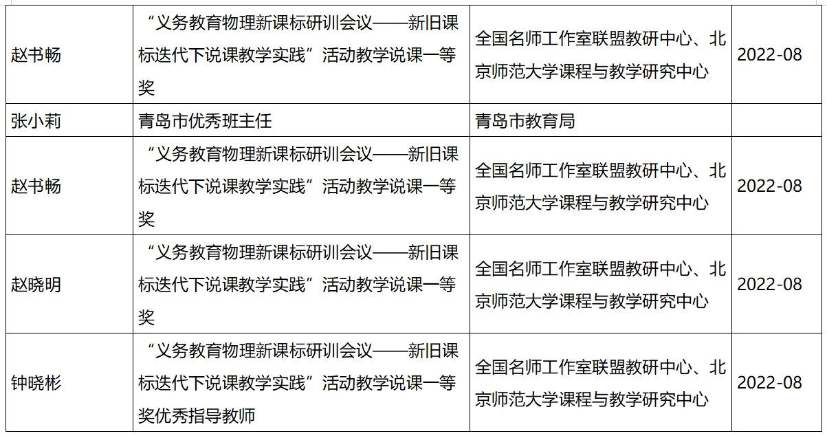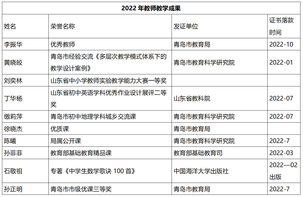 2021-2022學(xué)年青島實(shí)驗(yàn)初中教師教學(xué)成果情況統(tǒng)計(jì)