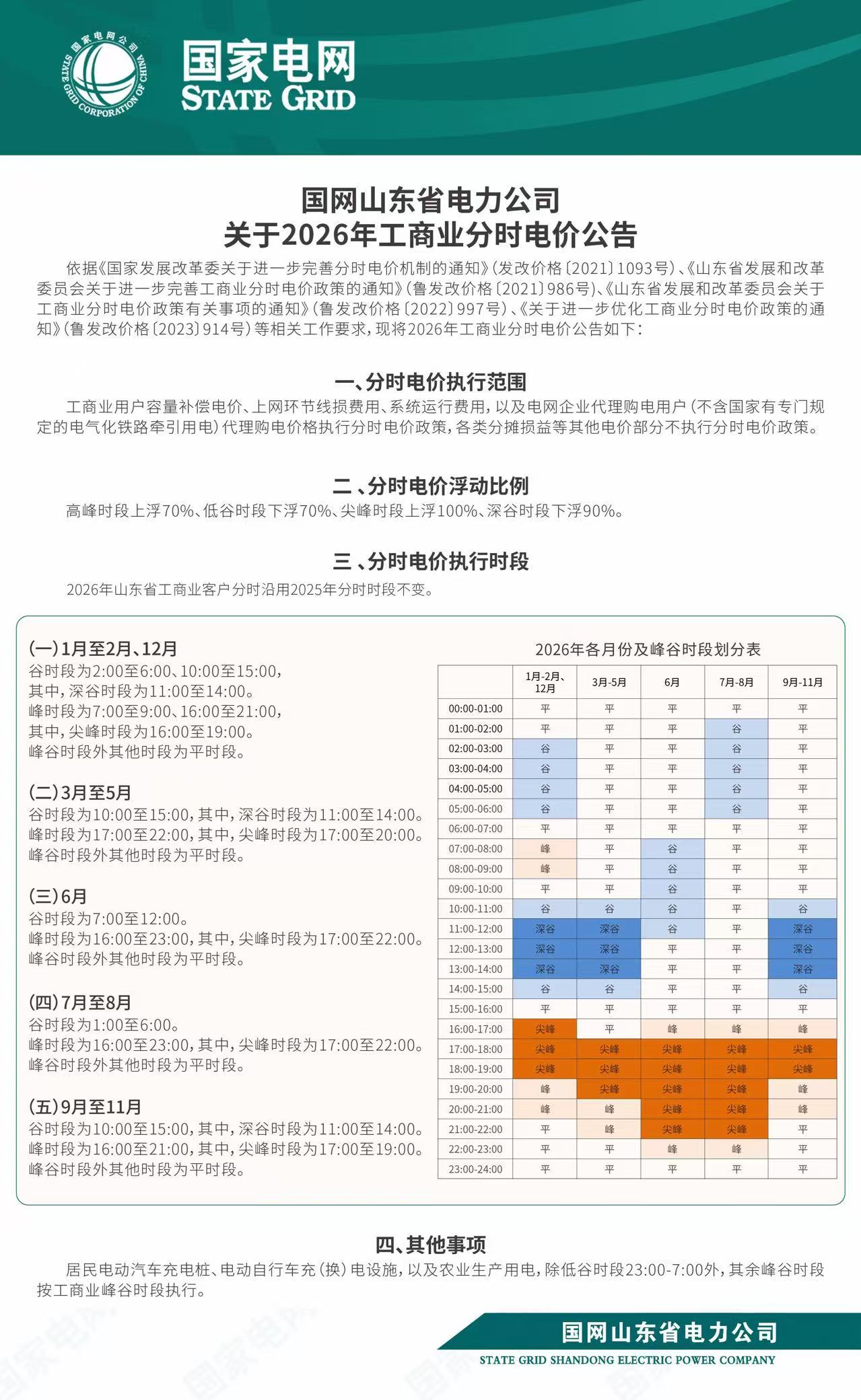 國網(wǎng)山東省電力公司關(guān)于2026年工商業(yè)分時(shí)電價(jià)公告