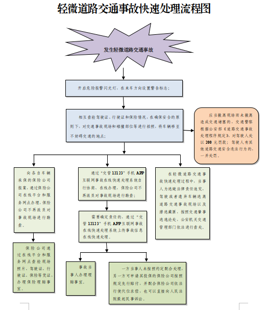 (二)關(guān)于快速處理的流程。《辦法》進(jìn)一步細(xì)化了快速處理的具體流程,對(duì)事故當(dāng)事人在發(fā)生輕微道路交通事故后查驗(yàn)相關(guān)證件、保險(xiǎn)情況,拍攝事故現(xiàn)場(chǎng)照片、保存證據(jù),通過(guò)保險(xiǎn)公司或“交管 12123”手機(jī) APP 互聯(lián)網(wǎng)事故在線快速處理系統(tǒng)自行協(xié)商、在線辦理等步驟進(jìn)行了具體要求,交通事故當(dāng)事人按照此流程即可快處處理輕微道路交通事故,及時(shí)撤離現(xiàn)場(chǎng),減少因此事故造成的道路交通擁堵。