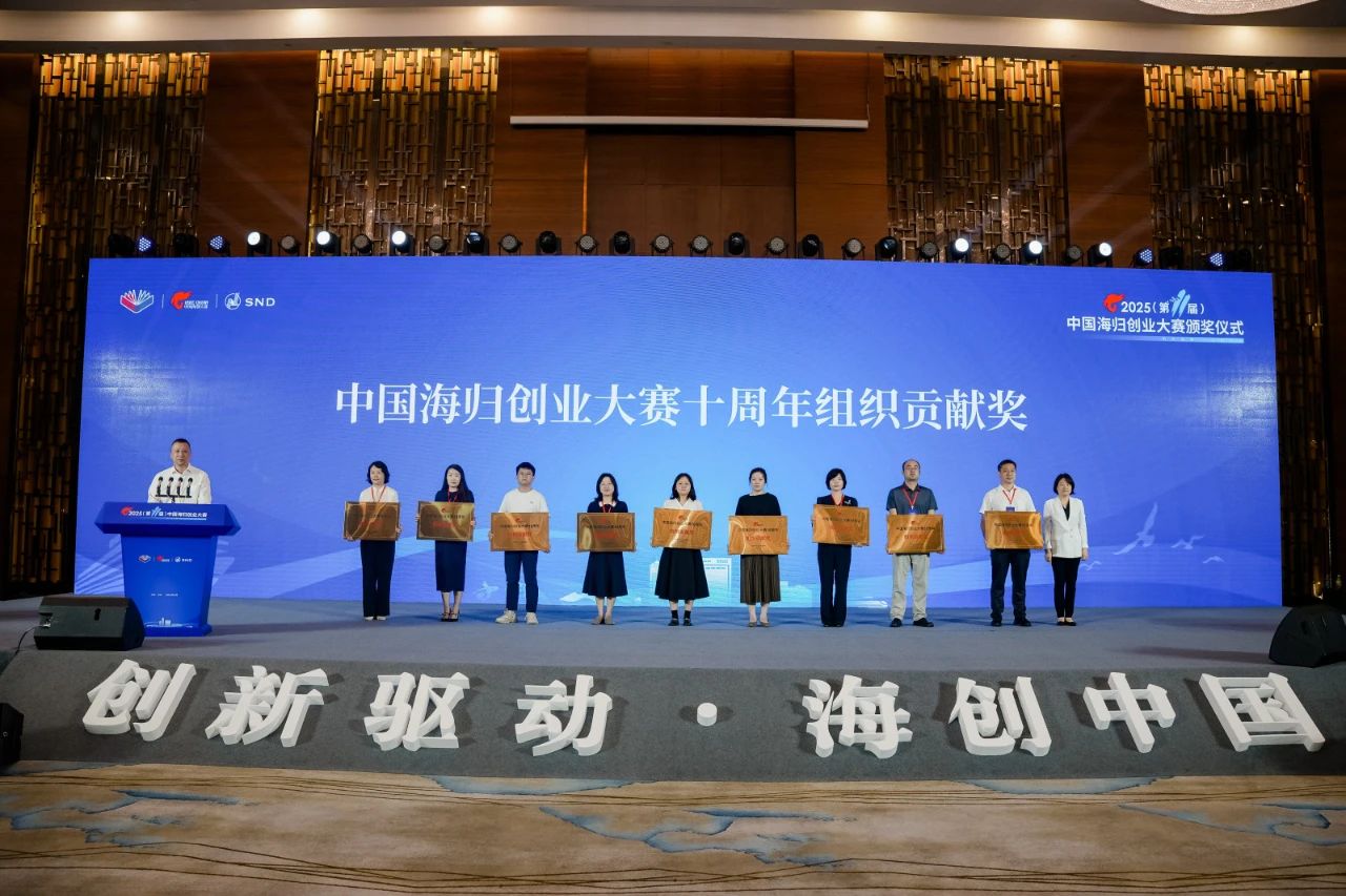 6月27日,由中國技術(shù)創(chuàng)業(yè)協(xié)會留學(xué)人員創(chuàng)業(yè)園工作委員會主辦的2025(第11屆)中國海歸創(chuàng)業(yè)大賽圓滿落下帷幕,現(xiàn)場進(jìn)行中國海歸創(chuàng)業(yè)大賽10周年總結(jié),全面回顧大賽舉辦10屆以來所重點開展的工作和取得的成果。憑借多年對大賽的貢獻(xiàn)與支持,市工研院獲授中國海歸創(chuàng)業(yè)大賽10周年組織貢獻(xiàn)獎。