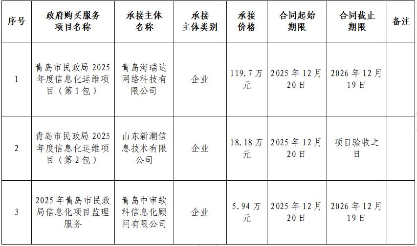 青島市民政局2025年度政府購買服務(wù)項目承接主體(政務(wù)信息化運維項目)