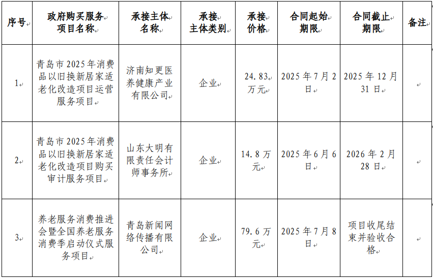 青島市民政局2025年度政府購買服務項目承接主體(居家適老化改造項目等)
