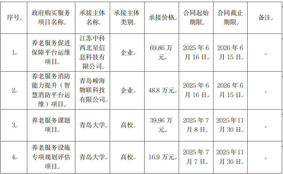 青島市民政局2025年度政府購(gòu)買服務(wù)項(xiàng)目承接主體(養(yǎng)老服務(wù)促進(jìn)保障平臺(tái)運(yùn)維項(xiàng)目等)