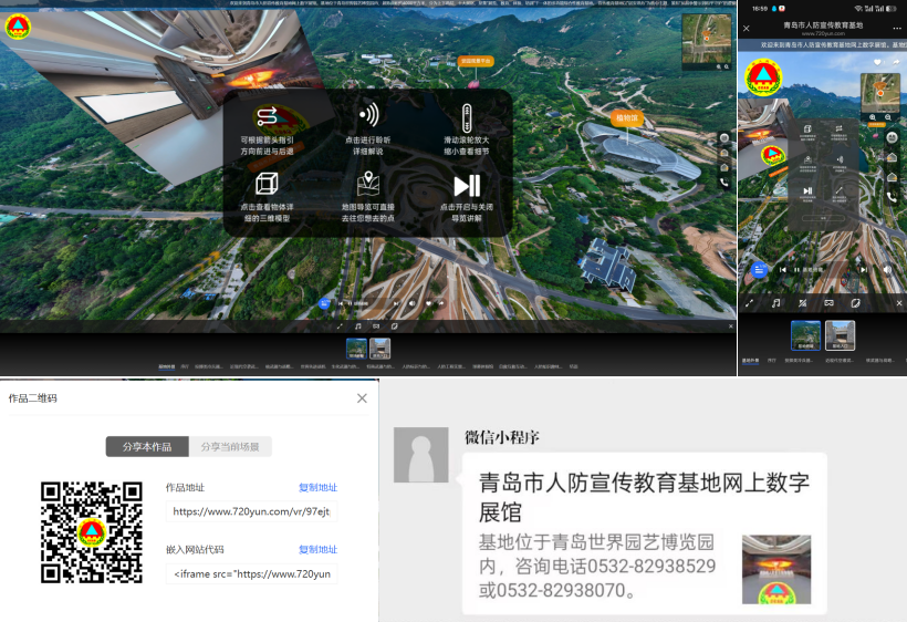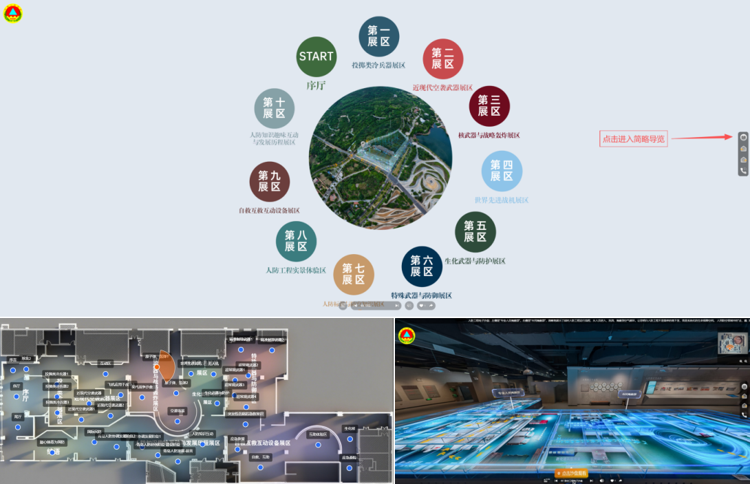 (青島市人防宣傳教育基地網(wǎng)上數(shù)字展館主場景,內置交互式沙盤地圖,支持一鍵跳轉與實時定位,觀眾可獲得全景視覺體驗)