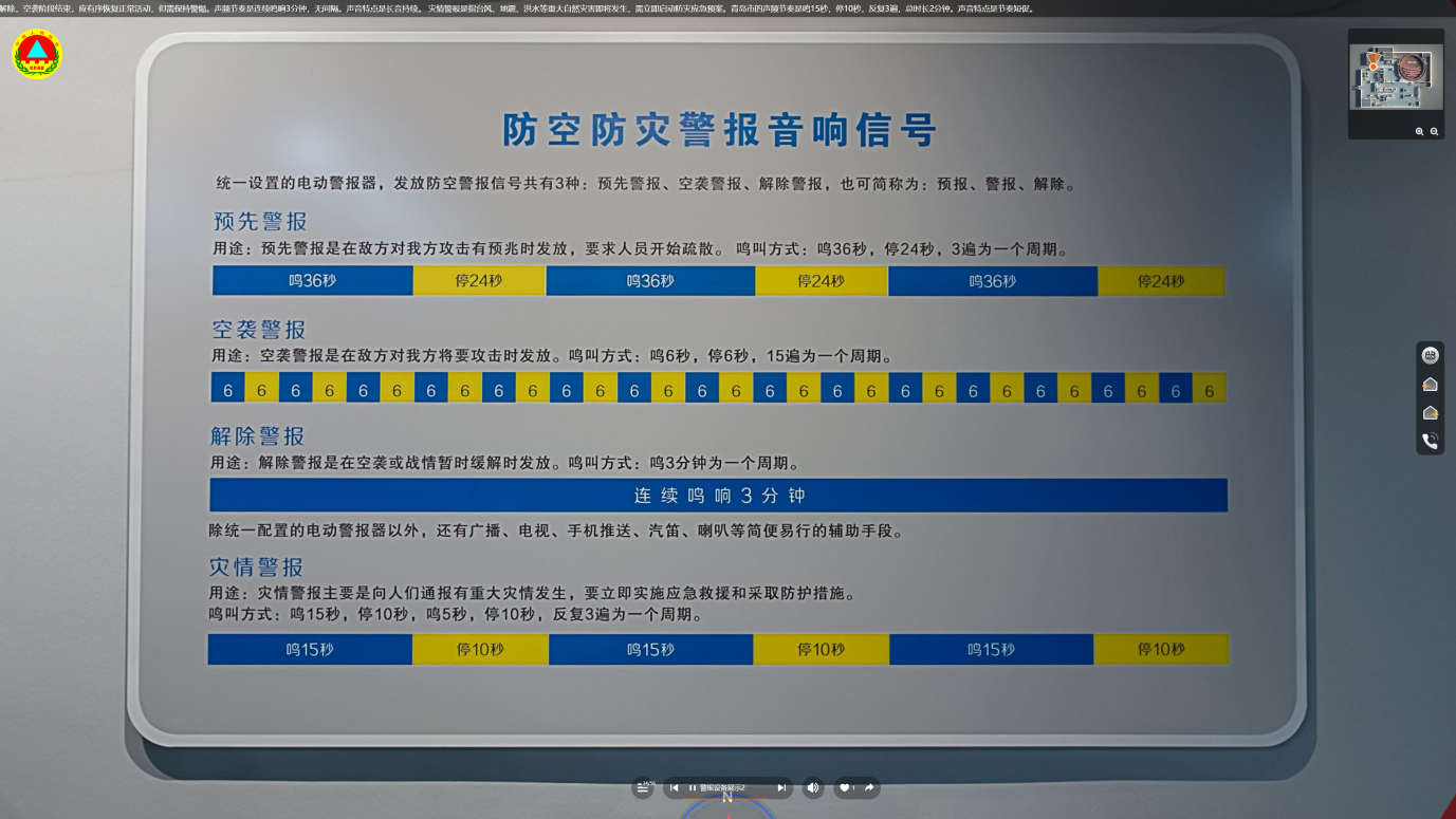 (最受歡迎的“人防警報試鳴”仿真模塊,市民可點擊觸發(fā)不同警報聲,學習對應的應急行動指令)