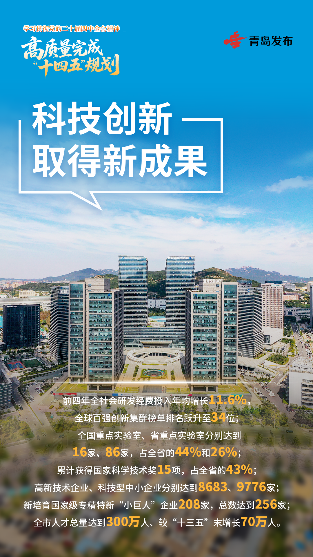 全市人才總量達(dá)到300萬(wàn)人、較“十三五”末增長(zhǎng)70萬(wàn)人,近日公布的2025年院士增選當(dāng)選院士名單中,全省新增8位院士,其中6位來(lái)自青島。