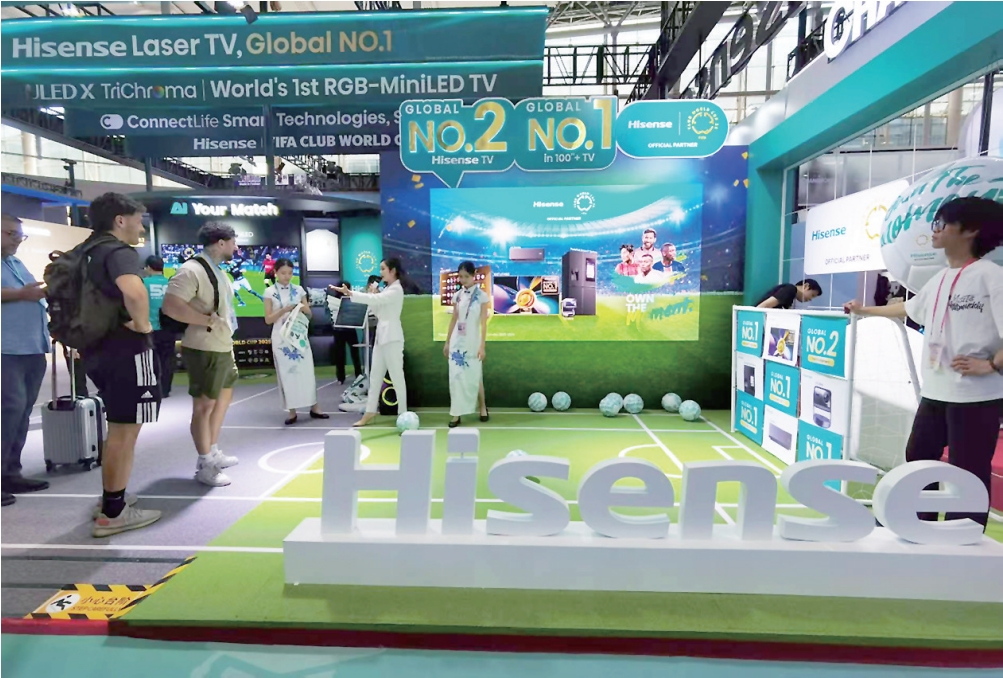 全球首臺RGB三色Mini?LED電視、全球首款專為Xbox定制的超短焦投影產(chǎn)品PX3-PRO、全球市場增長最快的音響品牌Soundbar……核心技術(shù)自主可控的“產(chǎn)品力”,是海信不斷積蓄海外市場本土化發(fā)展的競爭優(yōu)勢。在本屆廣交會上,海信以“AI?Your?Life”為主題,根據(jù)用戶的不同使用場景將展區(qū)進一步細(xì)分為“AI?Your?Picture”“AI?Your?Audio”等展覽單元,通過一個個鮮活的場景生動演繹,向全球客商展示海信在芯片、音視頻技術(shù)、智慧家居和綠色能源技術(shù)等方面的領(lǐng)先實力,以及AI賦能下的未來生活圖景。海信展臺還辟出專門區(qū)域設(shè)置足球互動游戲,吸引眾多客商參與。游戲不僅調(diào)動了現(xiàn)場觀眾的熱情,也呼應(yīng)了海信與體育和足球的連接,凸顯了海信在全球化布局中尤為注重體育營銷的力量。