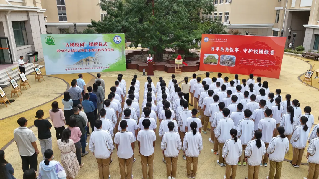 在28日的儀式上,青島市園林和林業(yè)局與青島三中共同為“古樹校園”揭牌,青島三中成為青島市首所獲此殊榮的學校。