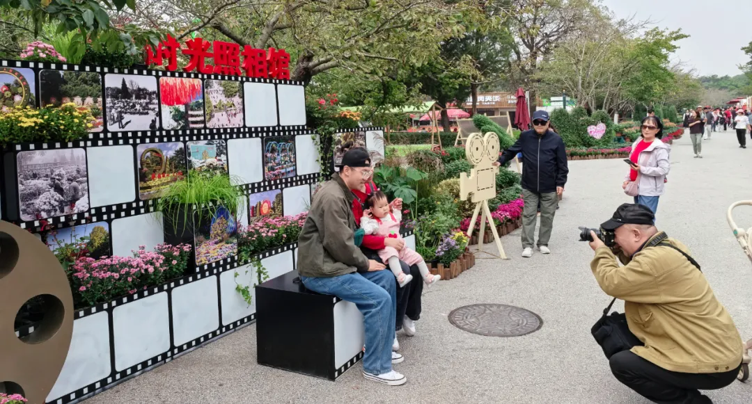 菊展上的“時光照相館”景觀引眾多市民前來取景拍攝