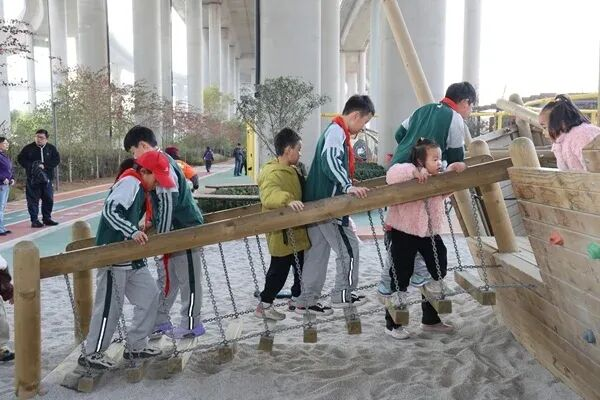 隨后,大家移步至兒童游樂區(qū),盡情體驗(yàn)瑪利亞號(hào)航海船、滑索、蛇形秋千、梁龍爬網(wǎng)、環(huán)島自行車等多種趣味設(shè)施。在盡情玩耍的同時(shí),老師們也不忘時(shí)刻提醒大家注意安全,做到自我保護(hù)并關(guān)愛同伴。