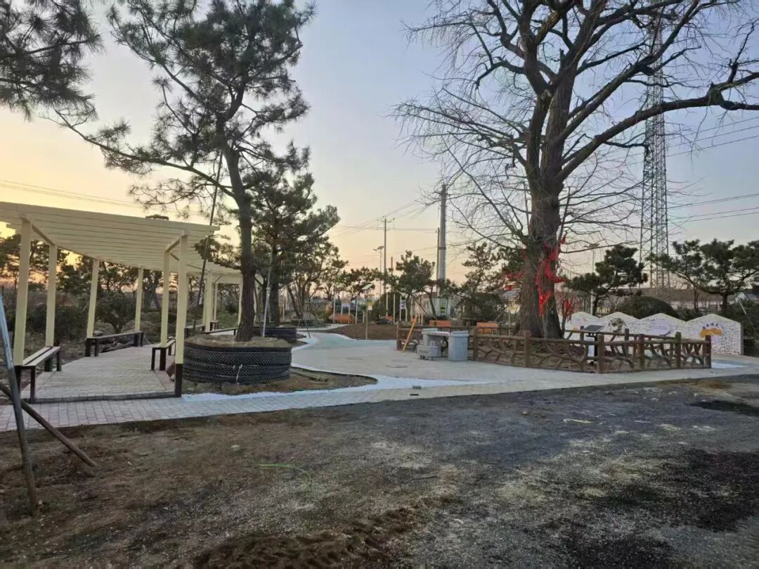 ? ?劉家屯村古樹公園的核心為兩株樹齡150余年的三級古樹(圓柏與側(cè)柏)。針對早年因集市活動導(dǎo)致的土壤板結(jié)、樹體受損等問題,市園林和林業(yè)局于2022年組織專家實(shí)施搶救性復(fù)壯,通過地下土壤改良、有害生物綜合治理及樹洞仿生修補(bǔ)等科學(xué)措施,使古樹重?zé)ㄉ鷻C(jī)。2025年3月,公園建設(shè)正式啟動,僅用兩個月便完成1134平方米的環(huán)境整治。公園劃分入口區(qū)、科普區(qū)、休憩區(qū)及核心保護(hù)區(qū),青石板步道蜿蜒其間,櫻花樹、五角楓等景觀苗木相映成趣,配套的涼亭、休息椅與古樹文化宣傳欄,讓這里成為村民家門口的“休閑客廳”。特別值得一提的是,園區(qū)引入了智慧管護(hù)系統(tǒng),安裝太陽能誘蟲燈及遠(yuǎn)程監(jiān)測站,實(shí)現(xiàn)了古樹健康監(jiān)測與市民休閑游憩功能的有機(jī)統(tǒng)一。“以前是雜亂荒地,現(xiàn)在變成漂亮公園,外村人都慕名來參觀! ”65歲的村民劉嬌芝望著枝繁葉茂的古樹,難掩心中喜悅。?