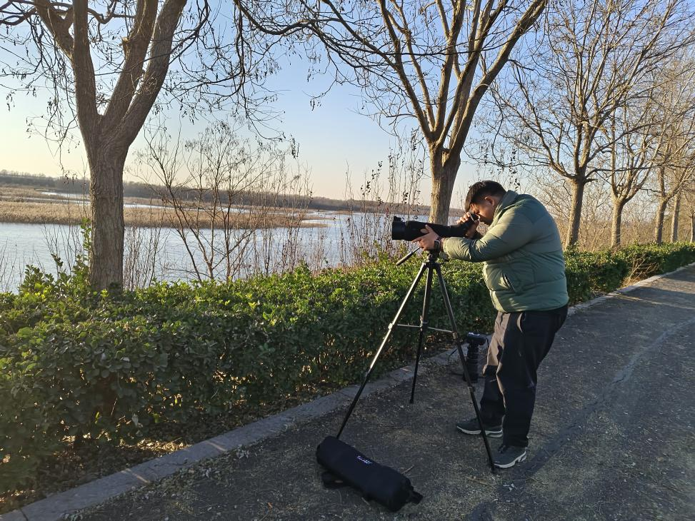 工作人員正在對(duì)已抵達(dá)大沽河的越冬水鳥(niǎo)進(jìn)行監(jiān)測(cè)
