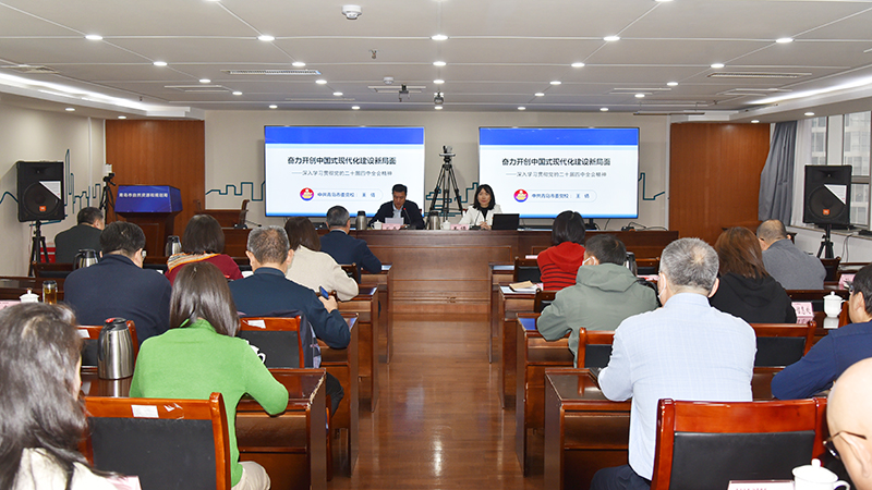 研討班邀請市委黨校(青島行政學院)專家教授作專題輔導授課。授課圍繞深入領會二十屆四中全會的重大意義、“十五五”時期經濟社會發(fā)展的總體部署、“十五五”時期經濟社會發(fā)展的重大任務等方面進行了系統(tǒng)全面、深入細致的闡述和解讀,授課內容脈絡清晰、生動形象、重點突出,有理論高度、有思想深度。