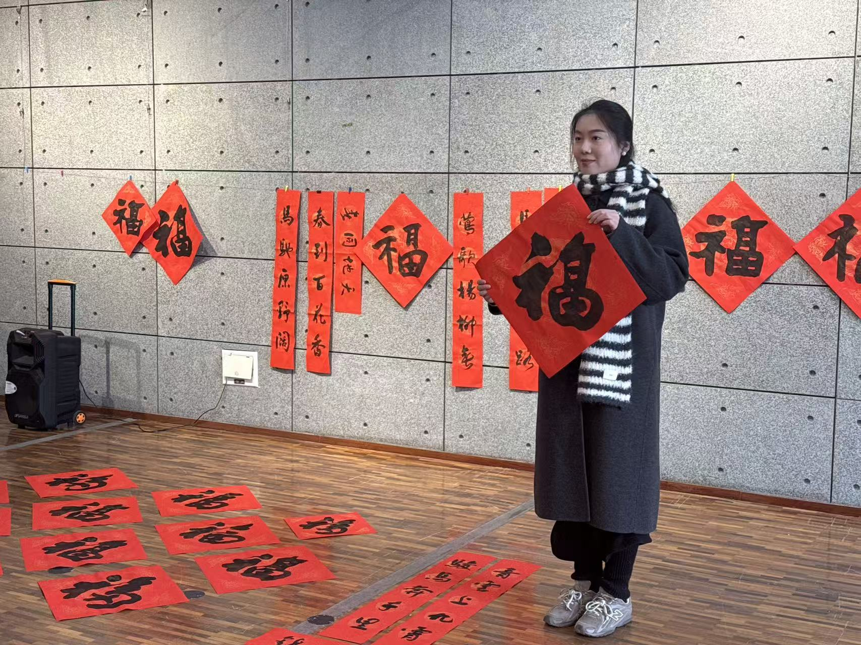 “福字相贈(zèng)”環(huán)節(jié)互動(dòng)熱烈,大家踴躍分享觀展后印象最深刻的雕塑作品,收獲書(shū)法老師林冰先生手寫(xiě)“?!弊郑P力遒勁的字跡,盡顯傳統(tǒng)書(shū)法韻味與新春美好祝福?!昂眠\(yùn)連連”幸運(yùn)抽獎(jiǎng)環(huán)節(jié)將活動(dòng)氛圍推向高潮,中獎(jiǎng)市民均獲贈(zèng)手寫(xiě)春聯(lián),不少人感慨“既能看展覽、賞藝術(shù),又能拿手寫(xiě)墨寶,這場(chǎng)活動(dòng)太有意義了!”書(shū)法愛(ài)好者們還在老師指導(dǎo)下,親手撰寫(xiě)專屬春聯(lián),沉浸式體驗(yàn)傳統(tǒng)文化魅力。