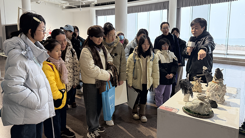 活動(dòng)首個(gè)環(huán)節(jié)“春潮塑韻”亮點(diǎn)十足?!按撼薄で鄭u雕塑雙年展”策展人張廷林先生圍繞參展作品,從材質(zhì)肌理、創(chuàng)作理念出發(fā),細(xì)致解讀作品中蘊(yùn)含的“春之氣息”與時(shí)代精神?,F(xiàn)場(chǎng)觀眾或駐足聆聽(tīng)、或拍照記錄,不時(shí)與身邊人交流感悟,沉浸在藝術(shù)熏陶之中。